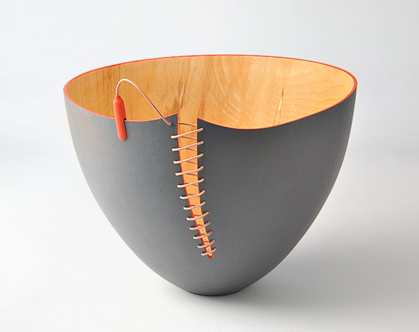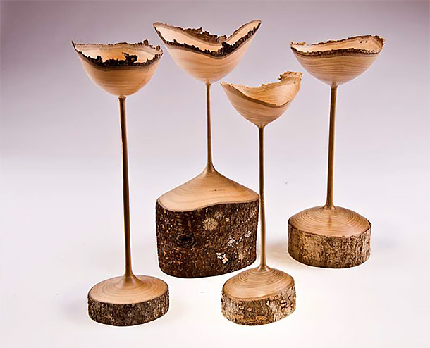 Ulf Jansson har specialiserat sig inom skärsvarvningen. Han svarvar tunna skålar som han avslutningsvis bearbetar genom att skära, sy och måla. Ulf använder oftast matematiska funktioner som bas för att skapa kantformer och mönster.