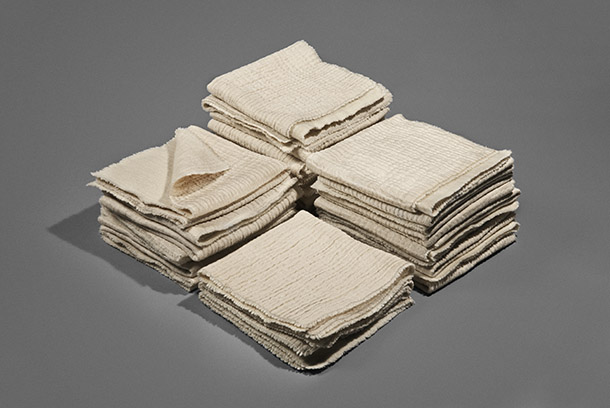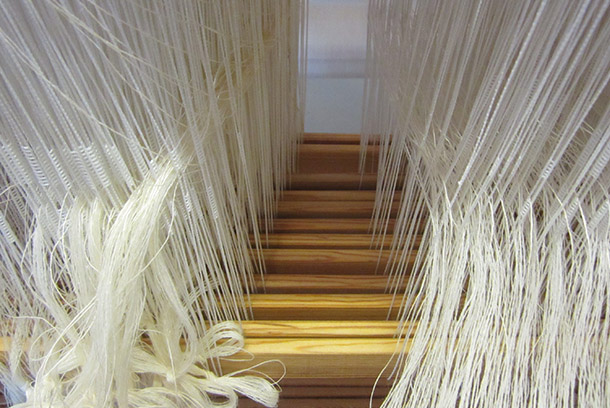 Från handgjort till industriellt. Birgitta Nordström är vävande doktorand och arbetar med att undersöka textilens rituella roll – i livet och inför döden. Just nu i form av ett forskningsprojekt där hon genom vävningen undersöker allt från mellanrummet mellan trådarna till hur den vävda textilen kan användas i en sorgeprocess. Det började för några år sedan när Birgitta började väva svepefiltar till dödfödda barn. Till en början vävdes de för hand men för att kunna pröva behovet av svepefiltar inom vården vävs nu materialet till filtarna industriellt.