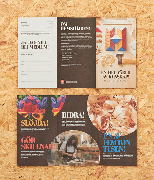 Samarbetet med Snask började redan 2012 i och med Hemslöjdens 100årsjubileum då Snask fick uppdraget att skapa jubileets formspråk och kampanjlogotyp. Tillsammans med slöjdare från olika delar av landet skapade Snask materialet på riktigt och för hand. Efter hundraårsfirandet beslutades att jubileets formspråk skulle utvecklas till en visuell identitet för hela organisationen. Det är med den nya visuella identiteten som Hemslöjden och Snask är nominerade till Brand Impact Awards.