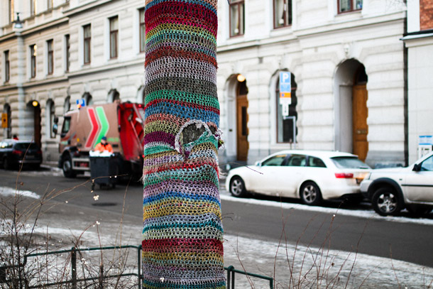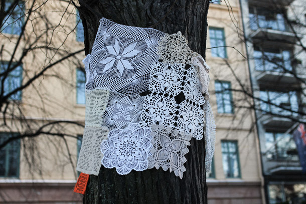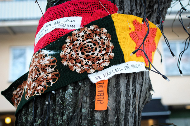 Nyligen uppmärksammade tidningen Mitt i Södermalm att Mariatorget i Stockholm inte är sig riktigt likt. Det tack vara gerillaslöjdsgruppen Ariadnes döttrar som har smyckat torget med olika verk med syftet att synliggöra kvinnors konst.