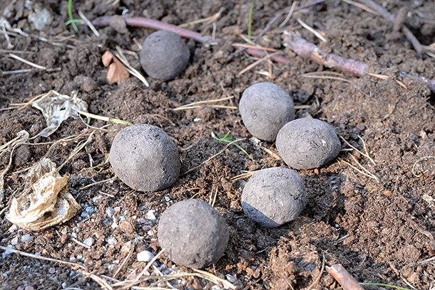 Blanda dina fröer med komposten eller jorden, tillsätt leran och knåda ihop. Finmald och silad lera används med fördel, men lite grövre i klump fungerar också. Häll på en aning vatten medan du rör om. Rulla i handflatan till bollar ungefär i golfbollsstorlek. Låt bollarna torka i solen något så att de håller ihop.