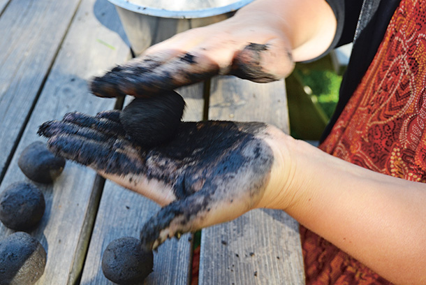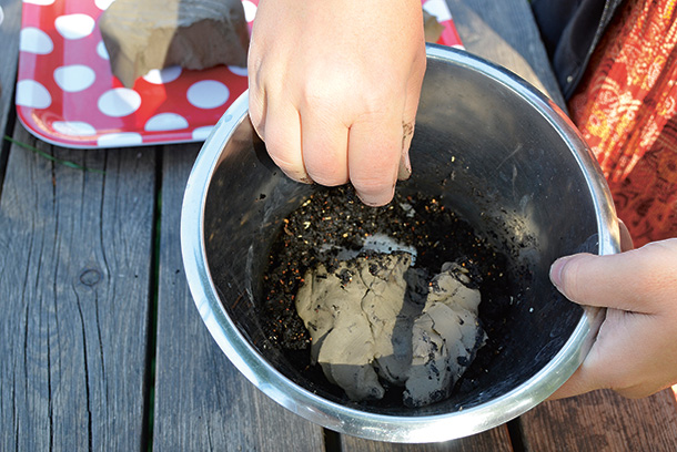 Blanda dina fröer med komposten eller jorden, tillsätt leran och knåda ihop. Finmald och silad lera används med fördel, men lite grövre i klump fungerar också. Häll på en aning vatten medan du rör om. Rulla i handflatan till bollar ungefär i golfbollsstorlek. Låt bollarna torka i solen något så att de håller ihop.
