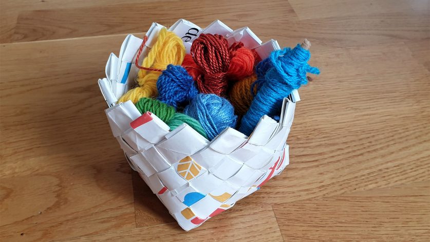 I detta slöjdtips visar vi hur du flätar en korg av en papperskasse du har liggandes hemma.