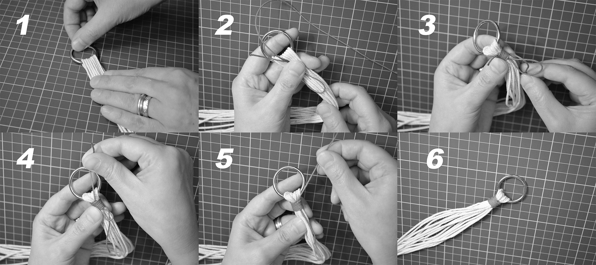 Den som inte vill tagla, enligt instruktionen här ovan, knyter om alla repen strax nedanför ringen med extrasnöret. Linda därefter snöret hårt ytterligare flera varv runt repen och knyt åt. Dra med stoppnålen in extrasnörets tåtar under snörningen och klipp sen av ändar som sticker ut.