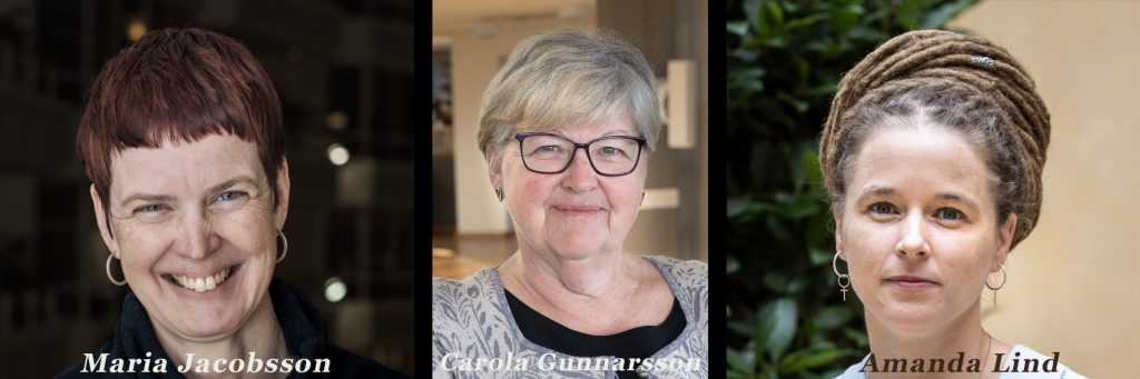 Maria Jacobsson, verksamhetschef för Hemslöjden, Carola Gunnarsson, ordförande i Västmanlands läns hemslöjdsförbund, samt Amanda Lind, demokrati- och kulturminister.