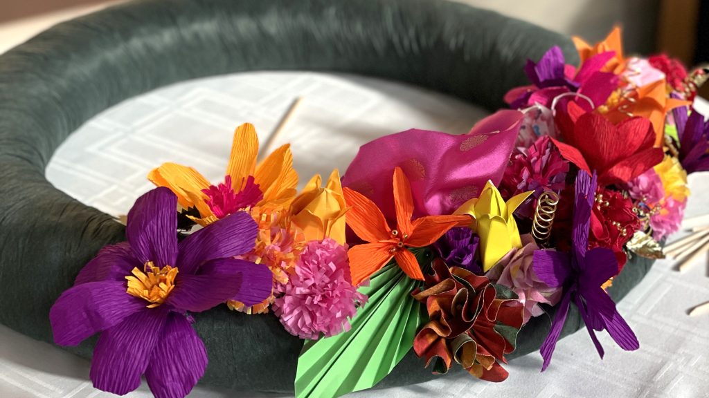 Alla som var på plats fick slöjda ett bidrag till en gemensam krans.