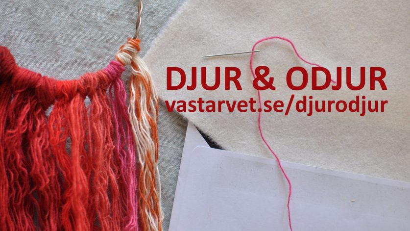 Slöjd stillar oro. Det är både vetenskapligt bevisat och upplevt av oss som håller på. Två timmar i vävstolen eller vid hyvelbänken skingrar tankarna och lugnar nerverna. Nu svajar tillvaron och vi behöver slöjden mer än någonsin. Därför är du som är medlem i föreningen välkommen att delta i broderiutmaningen Djur & odjur. Läs mer och anmäl dig på www.vastarvet.se/djurodjur