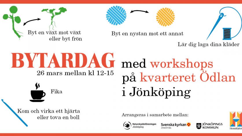 Under dagen blir byteshandel av olika slag men även ett par kreativa textila workshops- för en cirkulär och mer resurssparande framtid!