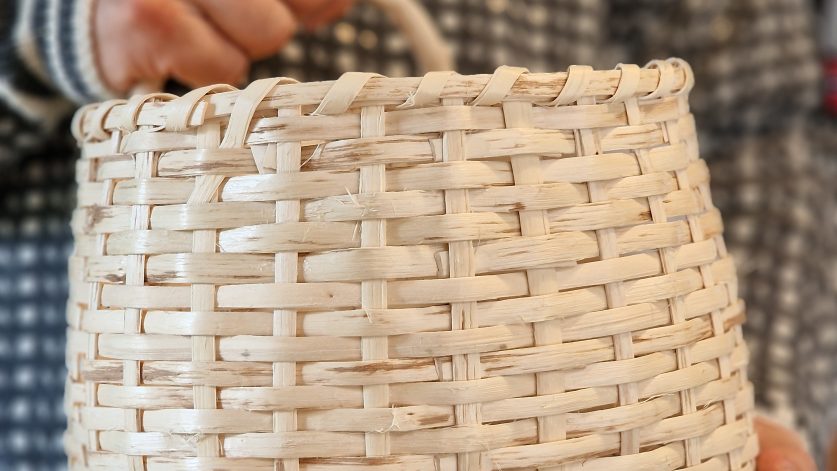 På kursen tillverkar vi korgar med inflätad sidogrepe. Vi knäcker fram spån från hasselkäppar som täljs till i rätt tjocklek och bredd och flätar sedan korgen med dem. På kursen lär du dig att knäcka fram hasselspån och bereda dem på rätt sätt. Du tillverkar en grepe och flätar sedan en korg. Du lär dig om lämpligt material och när det är rätt tid att samla in det. Det är bra om du har viss vana att tälja, eftersom du kommer att använda kniven mycket.