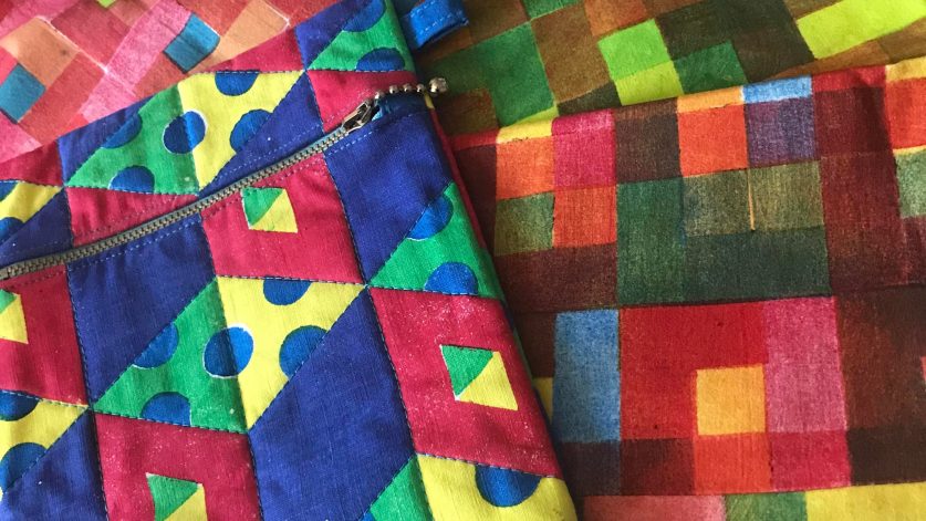 Så otroligt många mönster går det att skapa med stämplar i enkla geometriska former och textilfärg. Och lite färg behöver vi alla efter den långa vintern!