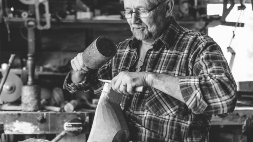 Nisse är en välkänd slöjdarprofil i trakten. Med lång erfarenhet och van slöjdarhand snidar han i trä och skär i näver. Hur många rockhuvuden och näverburkar han gjort genom åren går inte att räkna. Eller?