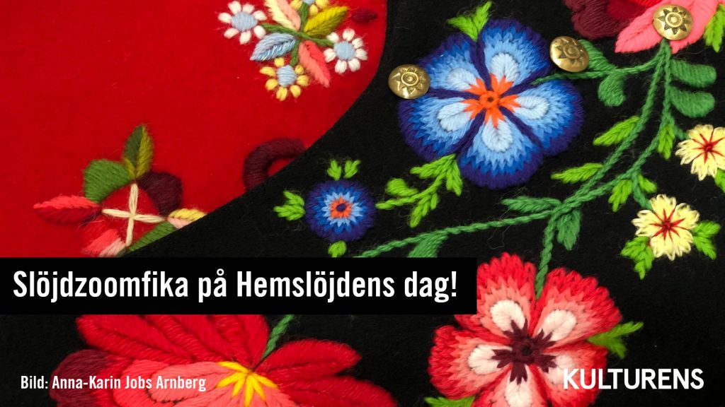 Vi slöjdar tillsammans på Zoom! Brodösen Anna-Karin Jobs Arnberg är med och berättar om sin relation till hemslöjden och sitt livslånga intresse för påsöm. Ta med dig en kaffe eller te, något hantverk du arbetar med just nu och umgås en stund framför datorn.