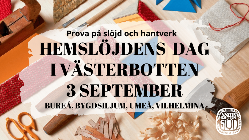 Kom och fira Hemslöjdens dag den 3 september med oss på Västerbottens läns hemslöjdsförening och våra samarbetspartners! Utställningar, ”Prova på slöjd”, fika m.m på olika platser i länet.