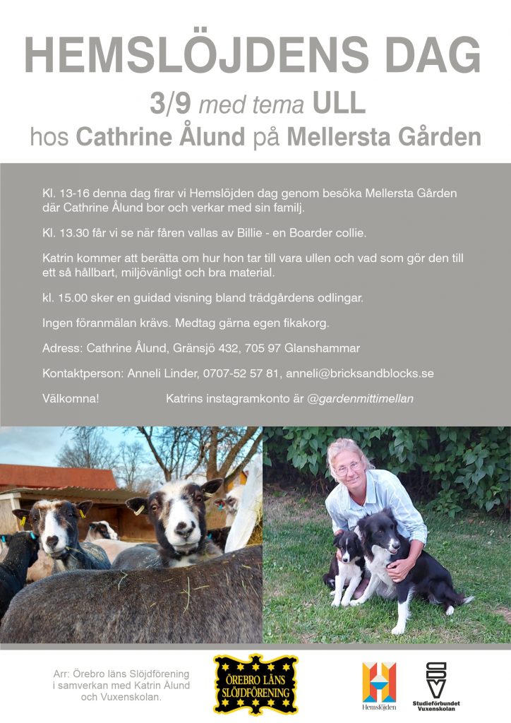 Kl. 13-16 denna dag firar vi Hemslöjden dag genom besöka Mellersta Gården där Cathrine Ålund bor och verkar med sin familj.