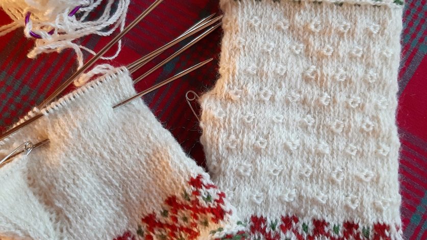 Ta med: tvåtrådigt ullgarn i olika färger, strumpstickor eller rundsticka 2½ eller 3, beroende på handlag och önskemål om stickfasthet, en stor säkerhetsnål.