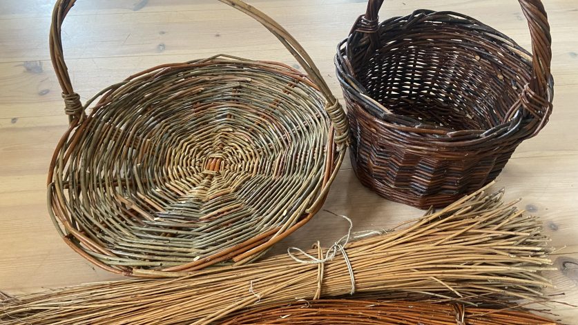 Material till korg för självkostnadspris finns på plats. Ta gärna med dig sekatör om du har och klä dig i oömma kläder. Om vädret tillåter slöjdar vi i Stenhusets trädgård annars är vi konsthallen. Ta med egen lunch – kylskåp, micro, kaffe och annan dryck finns på plats och ingår i avgiften.