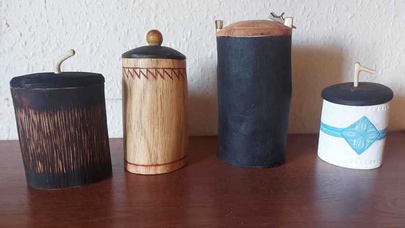 Vi tillverkar en burk i trä för att förvara små ting i. Vi börjar med att lära oss hur man urholkar ett ämne i färskt trä. Sedan görs botten av torrt trä och passas in i den bottenlösa burken som sen torkas. Vi skall även dekorera burkarna med t ex karvsnitt, ytbehandla med färg, kanske marmorera eller bränn och tillverka ett lock.