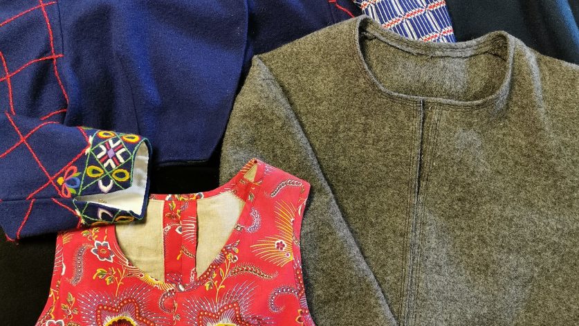 På kursen får du utgå från ett av dessa mönster. Vi syr en toile (provplagg i bomullslärft/lakansväv) till den jacka du vill sy och ändrar mönstret så att det passar dig eller den du vill sy till. Sen klipper vi till i ”rätt” material och syr upp plaggen på maskin med vissa detaljer för hand.