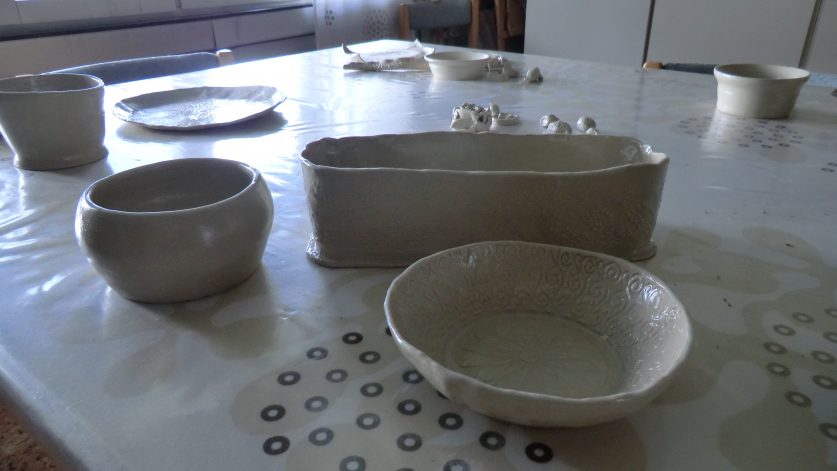 Vi kommer att kavla ut lera och försöka göra något eget. Efteråt bränner vid det hela och hämtar sakerna vid senare tillfälle.