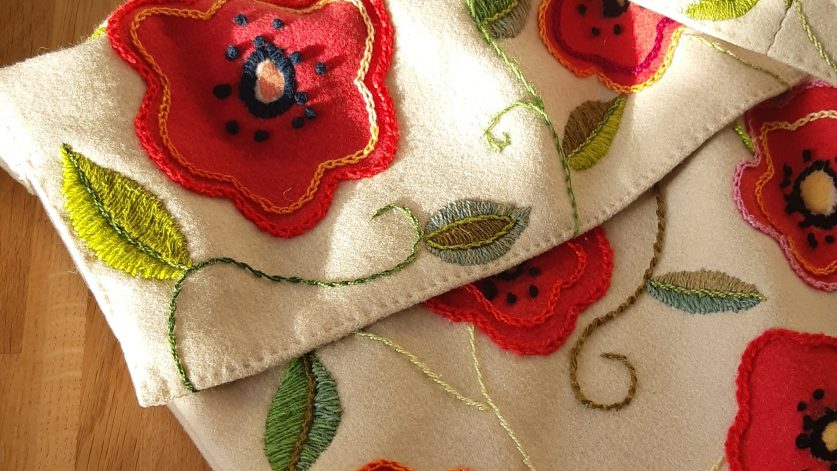Du får prova att måla på två olika ylletyger. Du kan sedan använda tyget som det är eller t ex använda det som bas för ett yllebroderi.