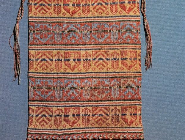 Ulrika Hermansson håller presentation kring medeltida väskor och visar väskmönster för stickning och virkning.