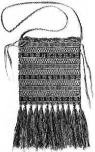 Ulrika Hermansson håller presentation kring medeltida väskor och visar väskmönster för stickning och virkning.