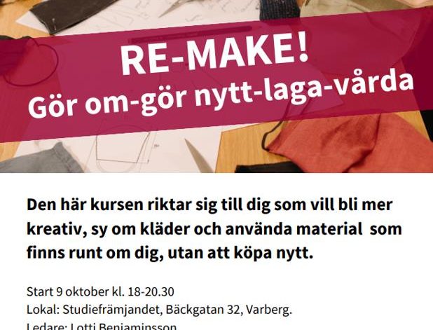 Den här kursen vänder sig till dig som vill bli mer kreativ, sy om dina kläder och använda material som finns runt dig, utan att köpa nytt.