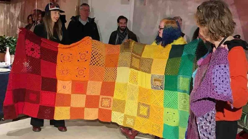 Filt För Demokrati är ett gemensamhetsprojekt med stickade och virkade rutor för alla människors lika
