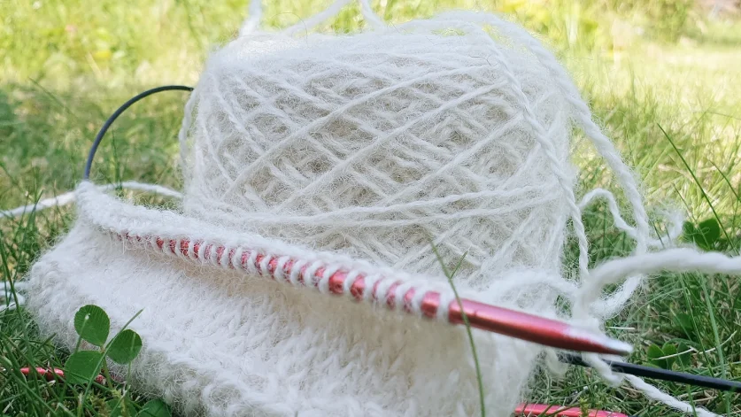 Stickkafé i bibliotekets vinterträdgård. Ta med din stickning eller virkning och handarbeta tillsammans!