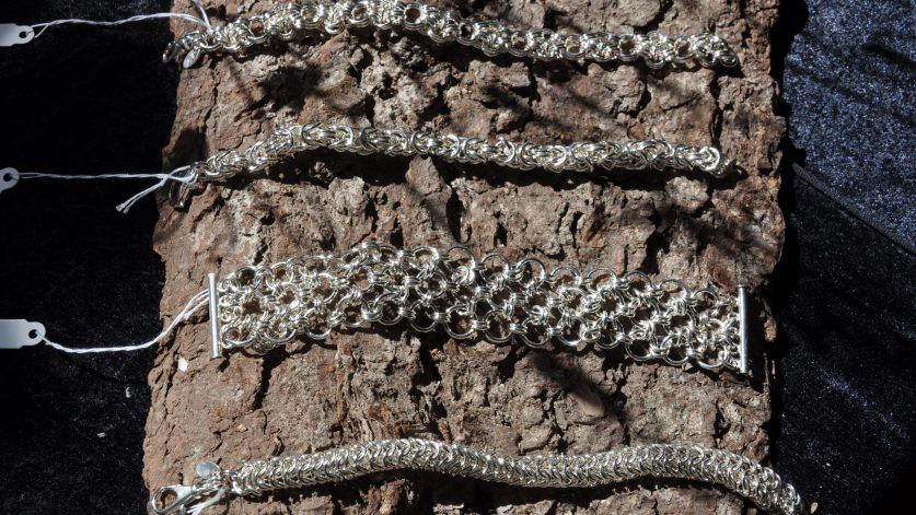 Vi provar på silverarbete genom att tillverka ett litet smycke med hjälp av små ringar som sågas ut från en tråd som är uppreglad. Detta är en gammal teknik inom smyckestillverkning där man inte lödar utan fogar ihop ringar i ett vackert mönster.