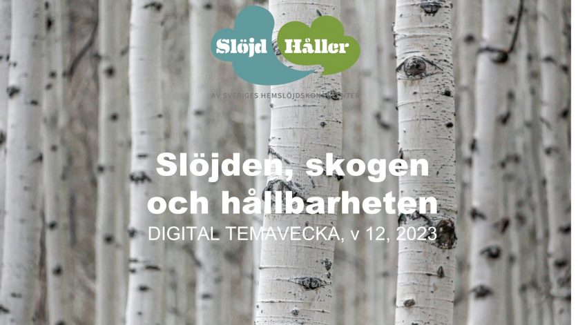 Vecka 12, 20-26 mars 2023 arrangerar hemslöjdskonsulenterna i Dalarnas-, Gävleborgs-, Värmlands, Uppsala, Västmanlands- och Örebro län en digital temavecka, Slöjd Håller, om slöjd och hållbarhet med fokus på de globala hållbarhetsmålen. I år har vi valt att lyfta fram slöjden, skogen och hållbarheten ur olika perspektiv.
