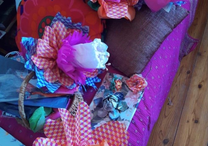 Ta med papper som du har hemma och har lust att skapa något av, till exempel silkespapper, kräppapper, omslagspapper, tidningar. En del material kommer att finnas på plats.
