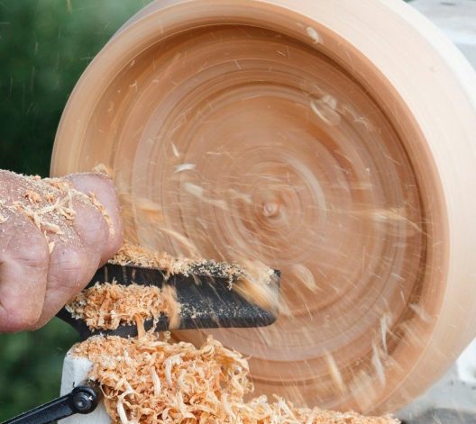 Slöjdcafé ”Svarva utomhus” i Hjärsta Gård med handledning av bl.a. Magnus Niklasson från Träsvarvarna.