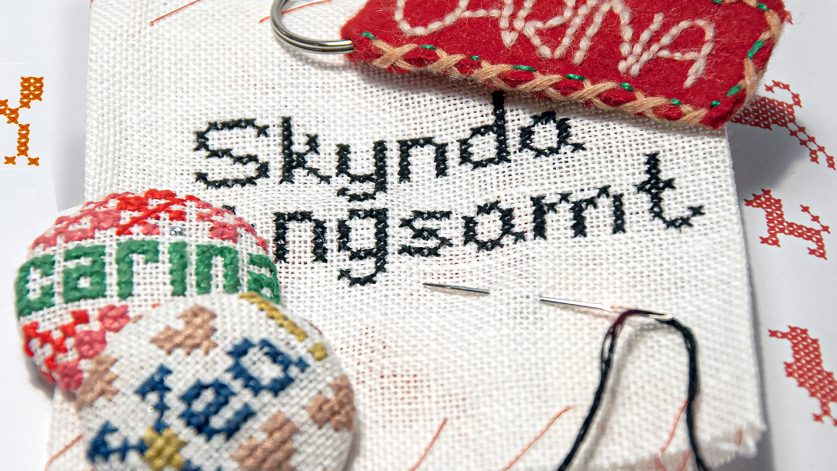 Brodera ditt budskap på linbotten där trådarna räknas, på ull passar det med