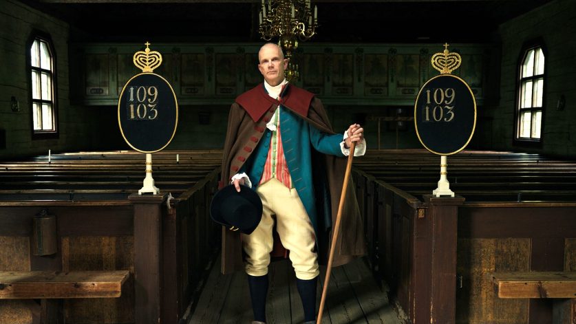 Bild: Kyrkstöten i 1700-talskläder i Seglora kyrka, fotograferad av Alex Hinchcliffe