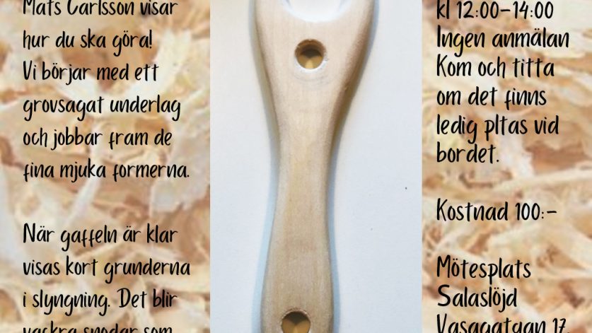 Torsdagen den 15/7 kan du göra en slynggaffel. Utifrån ett grovt utsågat material tar vi fram de mjuka fina formerna på en slynggaffel.