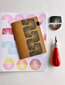 I kursen skär vi ut gummistämplar med linoleumknivar. Vi trycker sedan på olika sorters papper med olika typer av färg. Vi gör en enkel anteckningsbok som vi dekorerar med stämpeltryck. Dina tryck kan också användas för att skapa kort, omslagspapper eller små bilder. Tekniken är rolig och enkel och du kommer att hinna göra flera små stämplar under kursen.