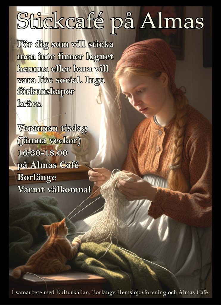 Vårens Stickkafé har kört igång och nästa träff är 6 februari och fortsätter tisdagar jämna veckor ända fram till 28e maj.