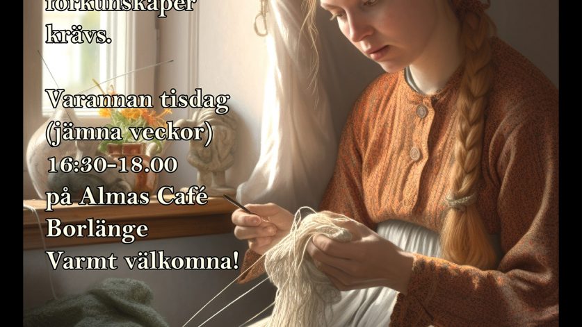 För dig som vill sticka men inte finner ro hemma eller bara vill vara lite social. Inga förkunskaper krävs, här får du hjälp! Du behöver inte vara medlem i föreningen och du behöver inte föranmäla dig. ALLA ÄR VÄLKOMNA.