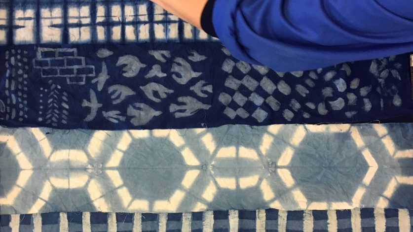 Under denna kurs går vi igenom grunderna i naturlig indigofärgning och sätter två färgbad enligt 1-2-3 metoden. Vi provar på olika typer av reservagetekniker för att skapa mönster. Vi viker och syr tyger och binder om garn och genom att måla eller trycka med lerpasta innan färgbadet skapar vi mönster. Målet är att få en större förståelse hur färg- och mönsterprocessen går till. Vi kommer fokusera på att färga tyger i bomull, silke och ull, och kort visa/prova teknikerna på garn. Denna kurs är för dig som har viss erfarenhet av färgning.