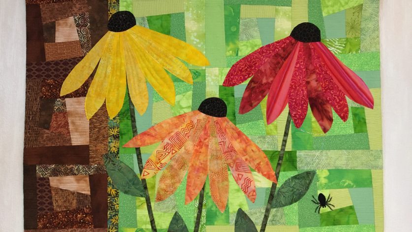 Lappverk sydda av medlemmar från VänTäcket, Lidköpings kviltgille och Billingekviltarna visas.