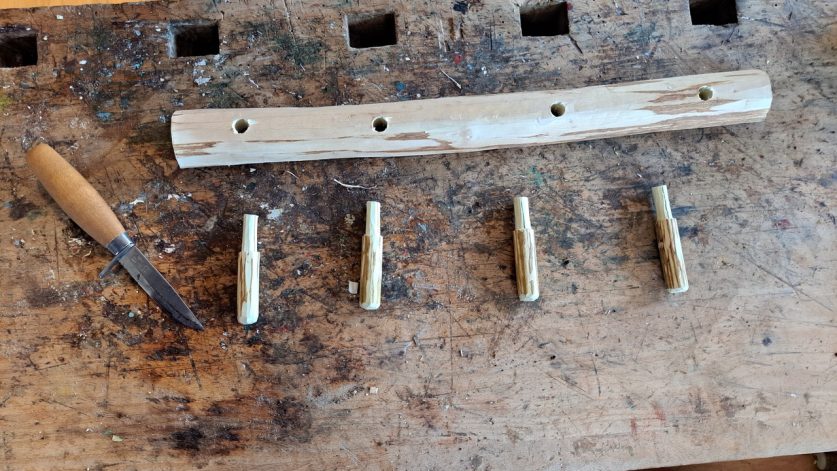 Lång eller kort, bred eller smal – hur ser den knopplist ut som just du behöver? Med yxa och täljkniv styr du hur den ska se ut. Med hjälp av områdesansvariga på Hovdala Slott får vi hänvisningar till var vi får fälla materialet vi kommer arbeta med. Så här lär du dig vad du ska söka efter för bra ursprungsmaterial.