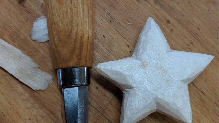 Täljning – grundkurs där vi går igenom och testar olika täljgrepp, och pratar om vad man behöver tänka på när man arbetar med skärande verktyg. Vi testar på att tillverka olika köksredskap som smörkniv, spatel eller stekspade.