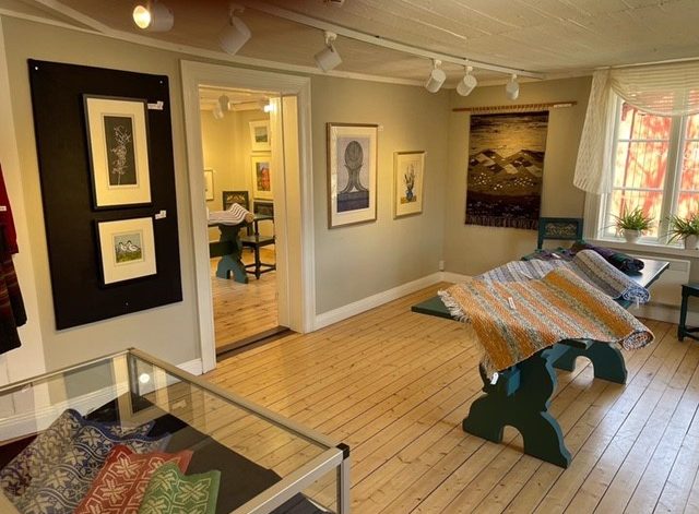 Två av våra trogna medlemmar visar sina skapelser, det är Anne Hörte Hellström, textil och Kjell Hellström, träsnitt.
