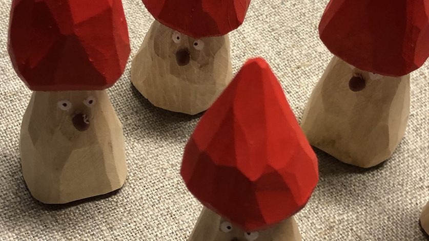 tillsammans i färskt trä. Denna gång täljs det tomtar.