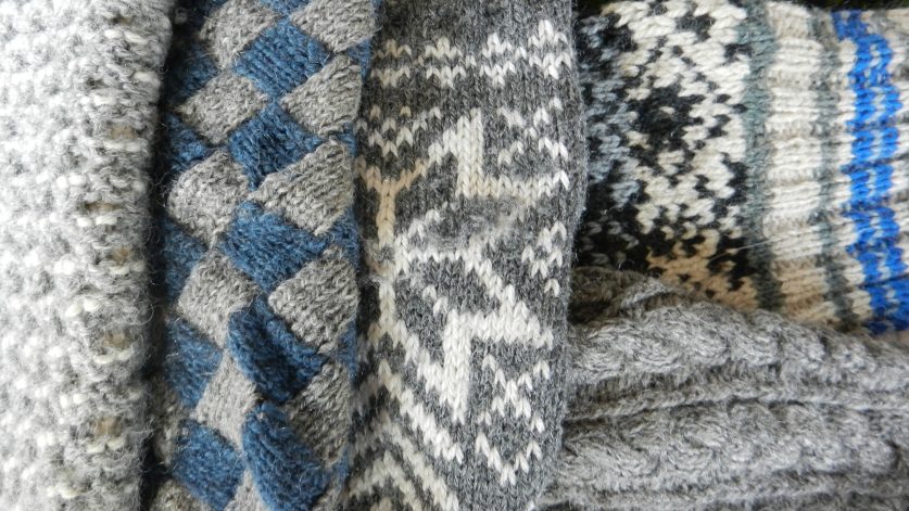 Länets hemslöjdskonsulent Ingela Fredell visar och berättar om inventerade vantar från länet.