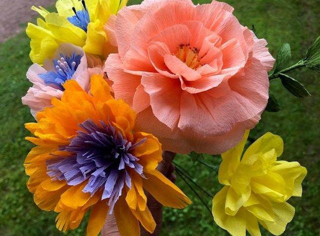 Du får göra papperblommor av kräppapper.