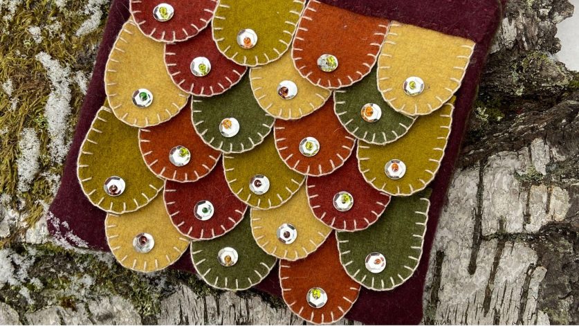 Vi syr för hand och arbetar i vadmal. Vadmal 25 x 25 cm och 15 cm dragkedja i olika färger finns även att köpa på plats. Du kan annars ta med egen vadmal och foder om du har.