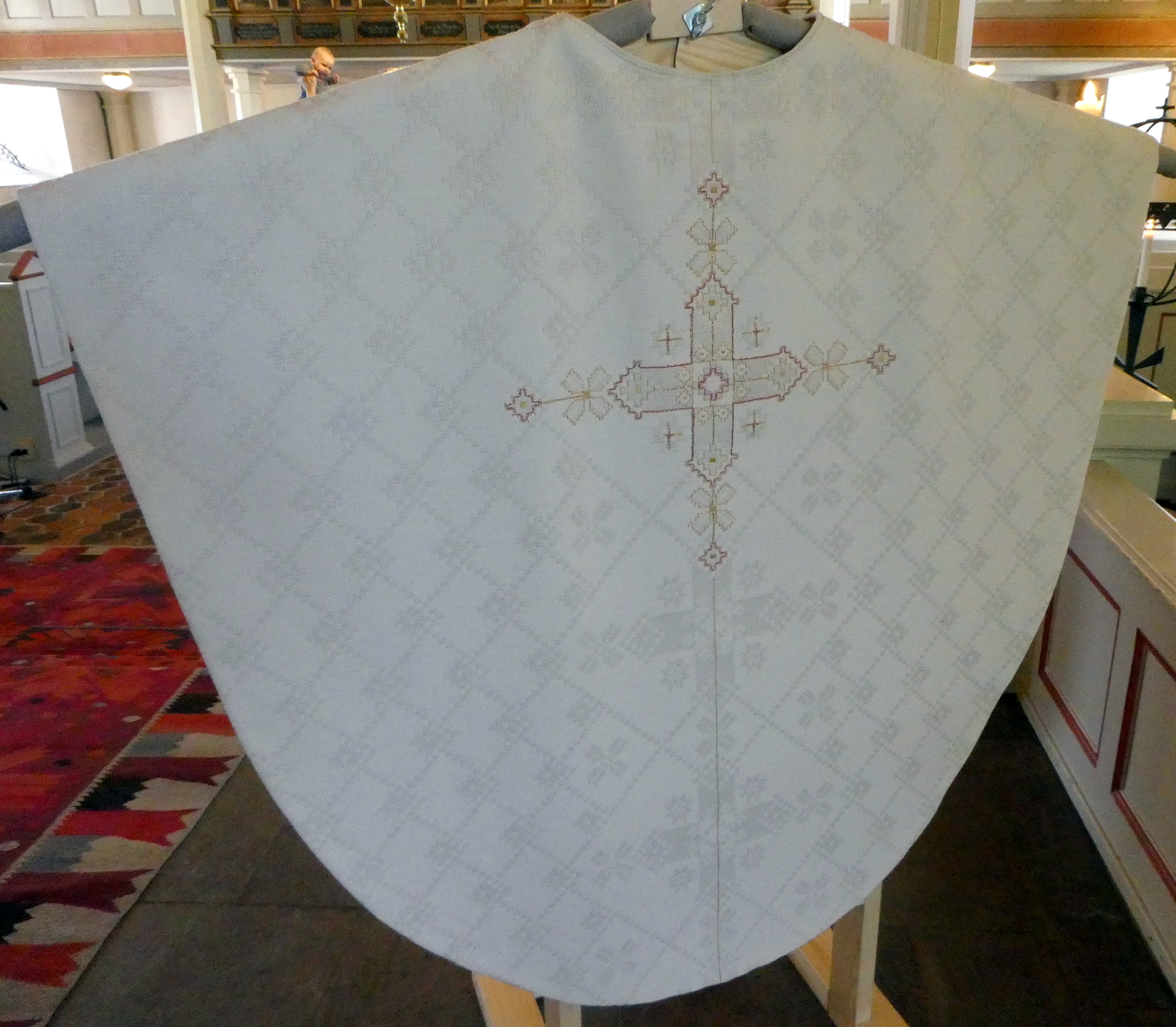 Textilkonstnär Karin Jönsson och senare Kristina Lindkvist har varit mina samarbetspartner där vi har formgivit, vävt, broderat och monterat mässhakar, kåpor, antependier mm. för många kyrkor, men mest i Skåne.