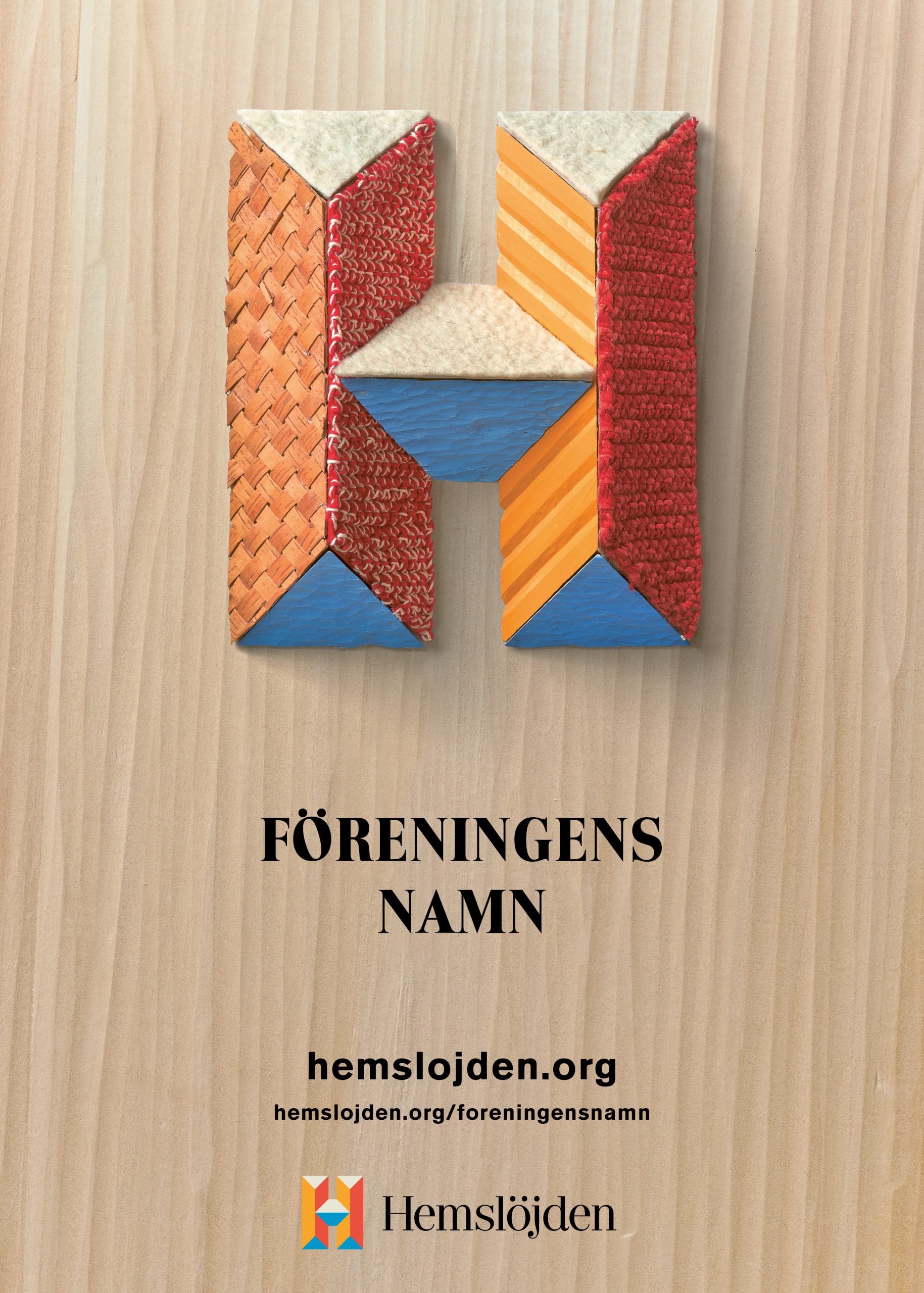 Om du vill ha en affisch till din förening behöver du höra av dig till annika.holmdahl@hemslojden.org i god tid. Skriv tydligt föreningens namn och webbadress (om den är utanför hemslojden.org) i mailet. Du får därefter en tryckfärdig pdf-fil tillbaka som ni kan lämna in till ert lokala tryckeri för tryck.